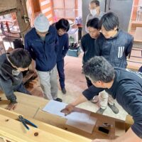 今年度の紡のワークショップでは、土曜日に比較的楽しみながら参加できるワークショップと、日曜日にはちょっと本格的な大工体験の2本立てで実施しています。今回のご報告は10月19日(日)に実施した大工体験の「屋根&壁の解体」です。