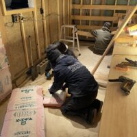 2025年最後のワークショップは、壁の下地作り作業となりました。壁板を貼るところまでいくかな…と思っていたのですが、思いの外、その下準備の作業に時間がかかりました。でも、その後の仕上がりを左右する大切な作業ですので、しっかりと必要な箇所に角材を入れていきます。配線を避けて材を入れていくので、凹を付けてカットしたりしないといけないので結構大変な作業です。