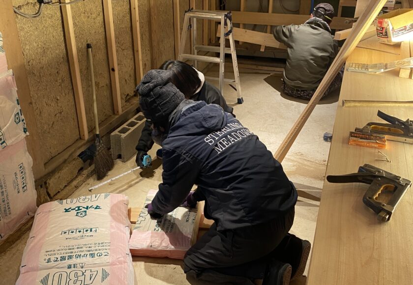 ここをしっかりやっておかないと、壁や床の板を貼ることができませんので大切な作業です。そして、必要な箇所に断熱材を入れる作業も行いました。次回から上に板を貼る作業になりますので、一気に部屋っぽい雰囲気に生まれ変わると思います!