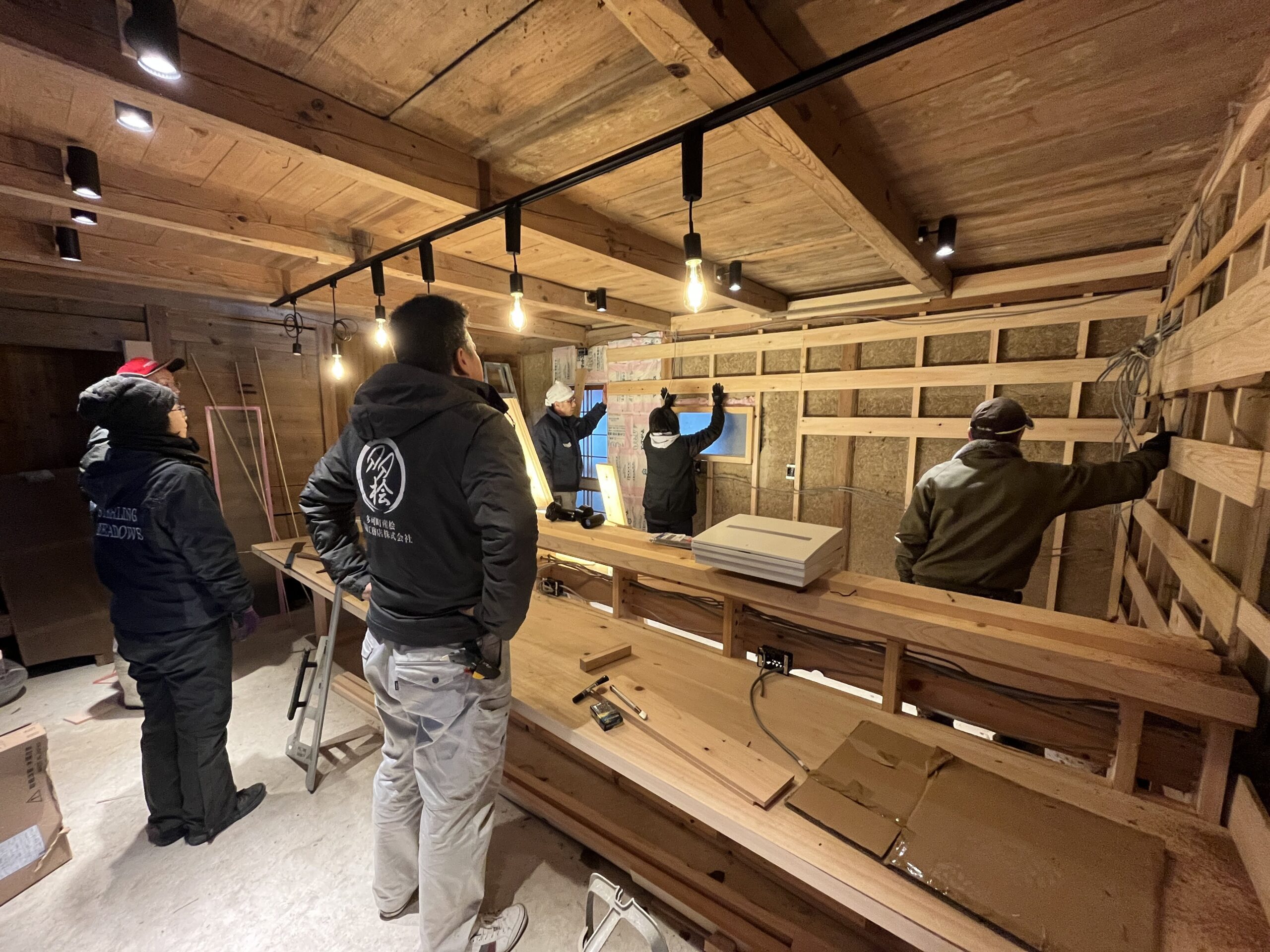 【飲食店作りワークショップ】壁板貼りと2階の床作り
